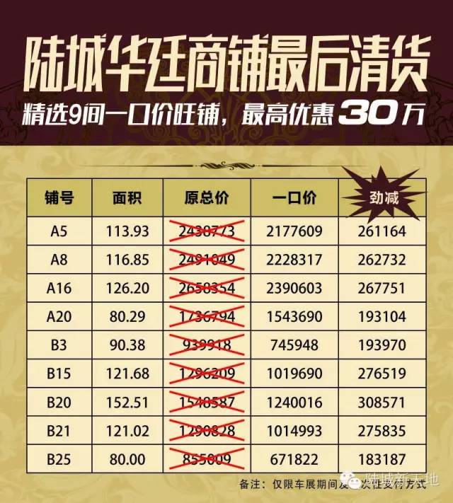 一場(chǎng)精彩紛呈的車(chē)市盛宴,屆時(shí),引爆陸豐全城熱情的將不止是炫酷的豪車(chē),和眾品牌靚麗車(chē)模匯集的視覺(jué)沖擊,更有陸城華廷震撼推出終極讓利一口價(jià)旺鋪!車(chē)展期間推出終極優(yōu)惠,最高優(yōu)惠30萬(wàn)!