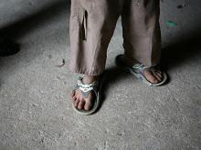 我們要離開了,這個孩子才肯怯怯的出來接受禮物